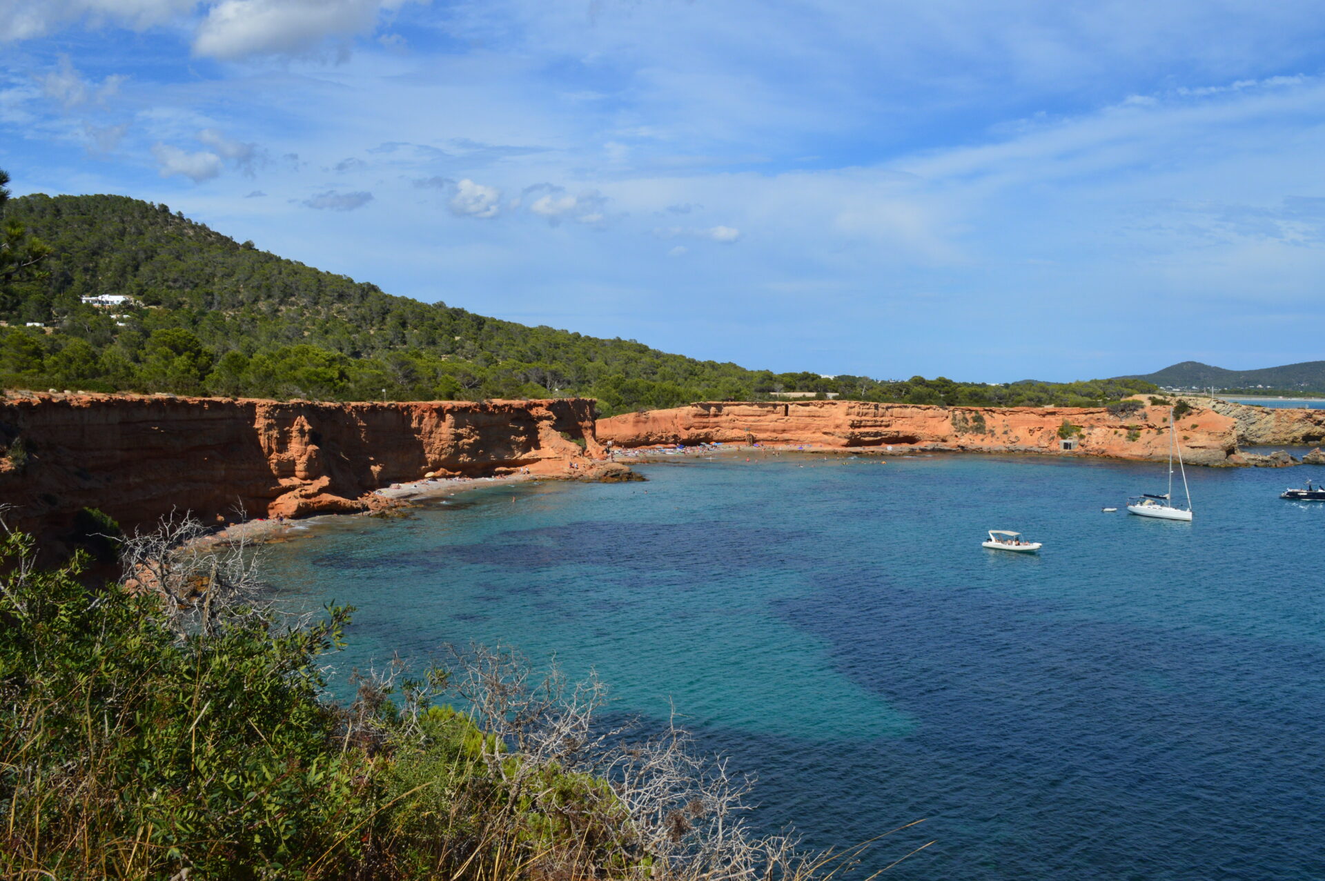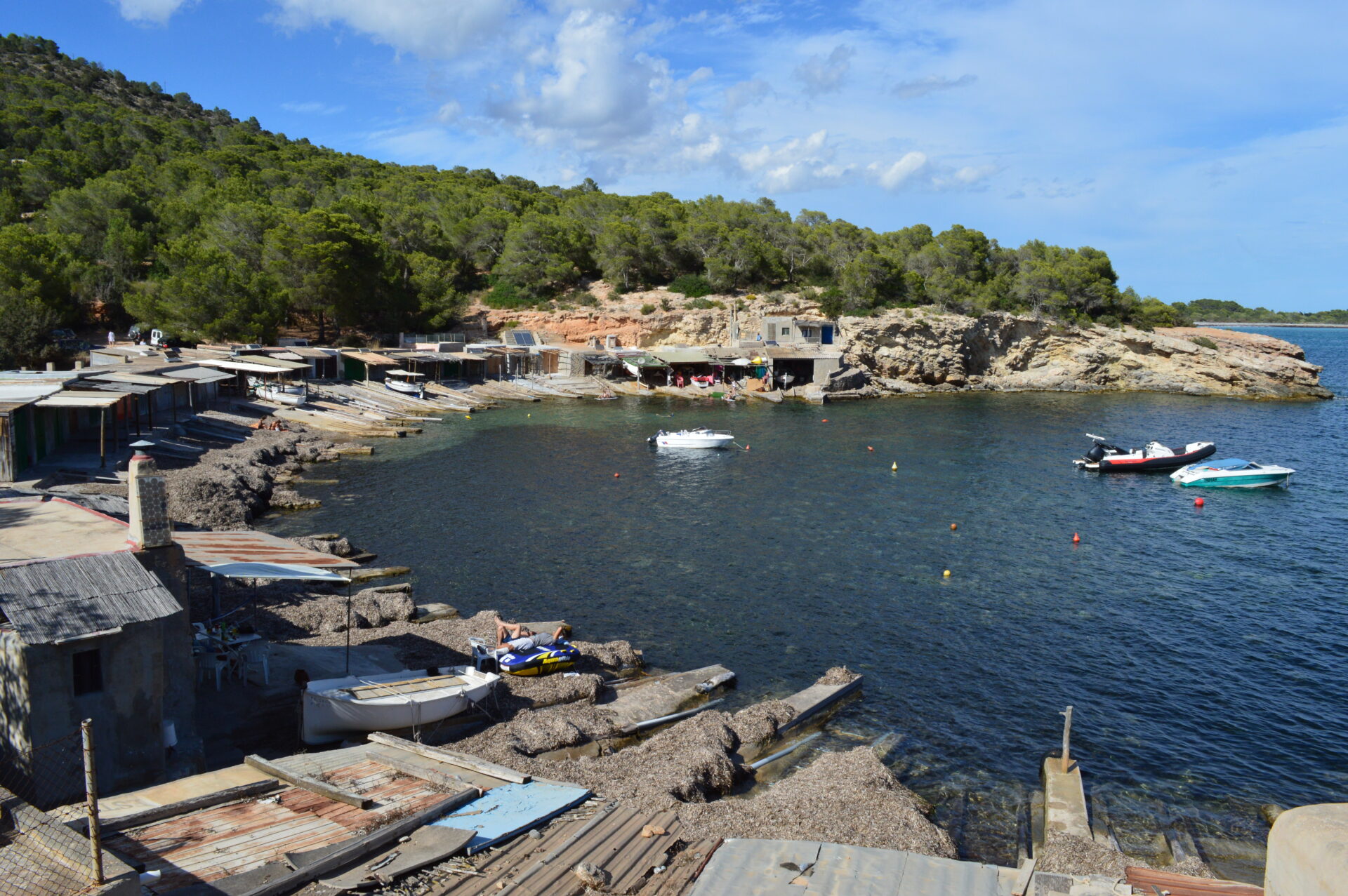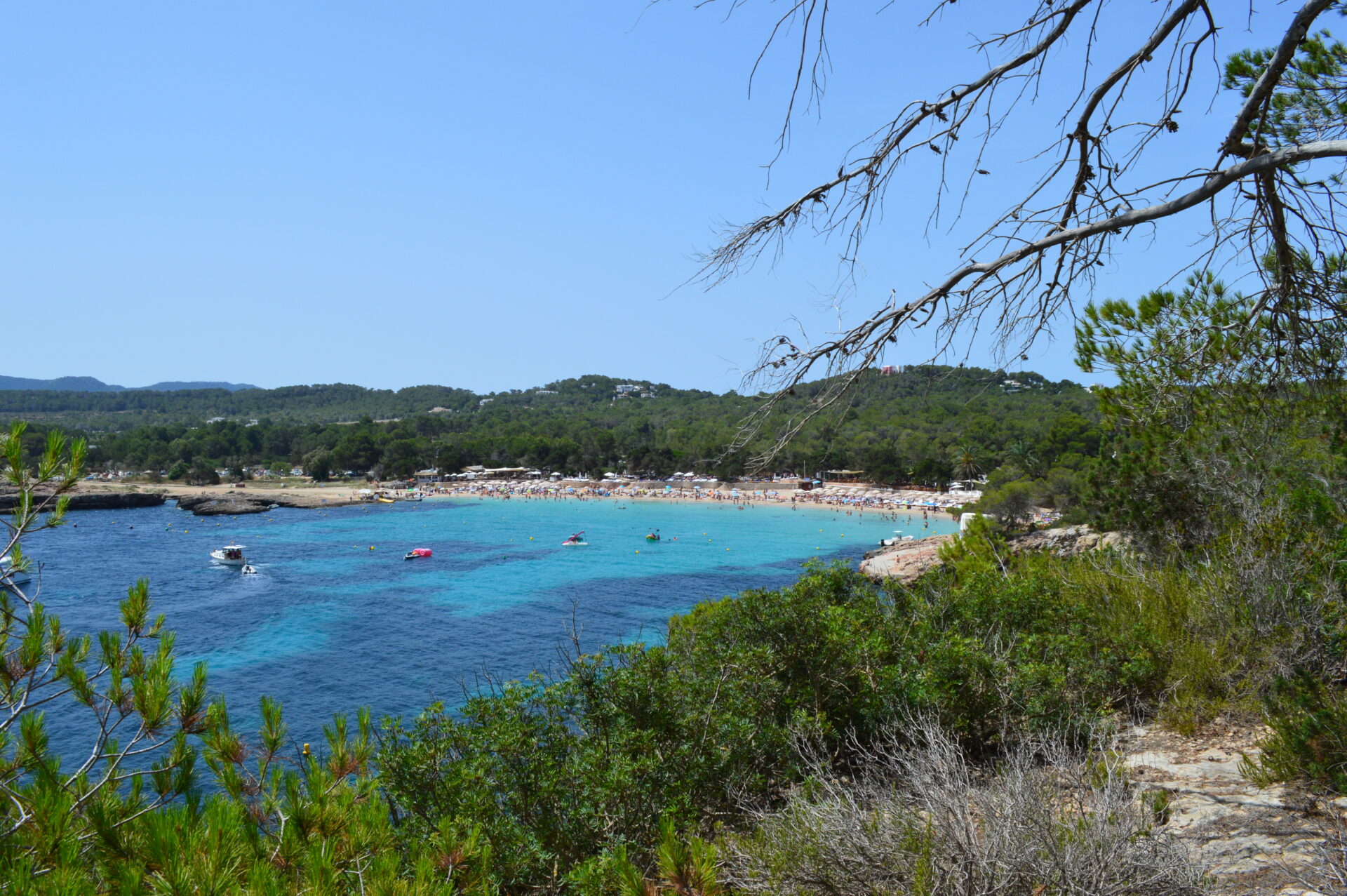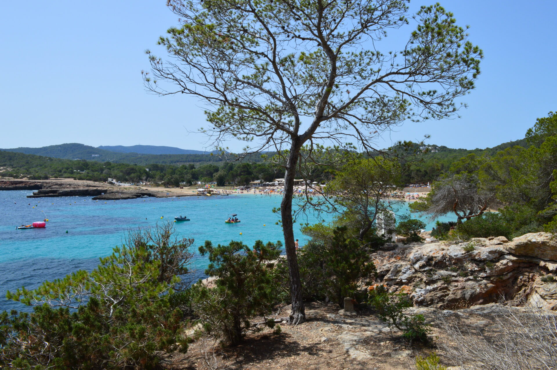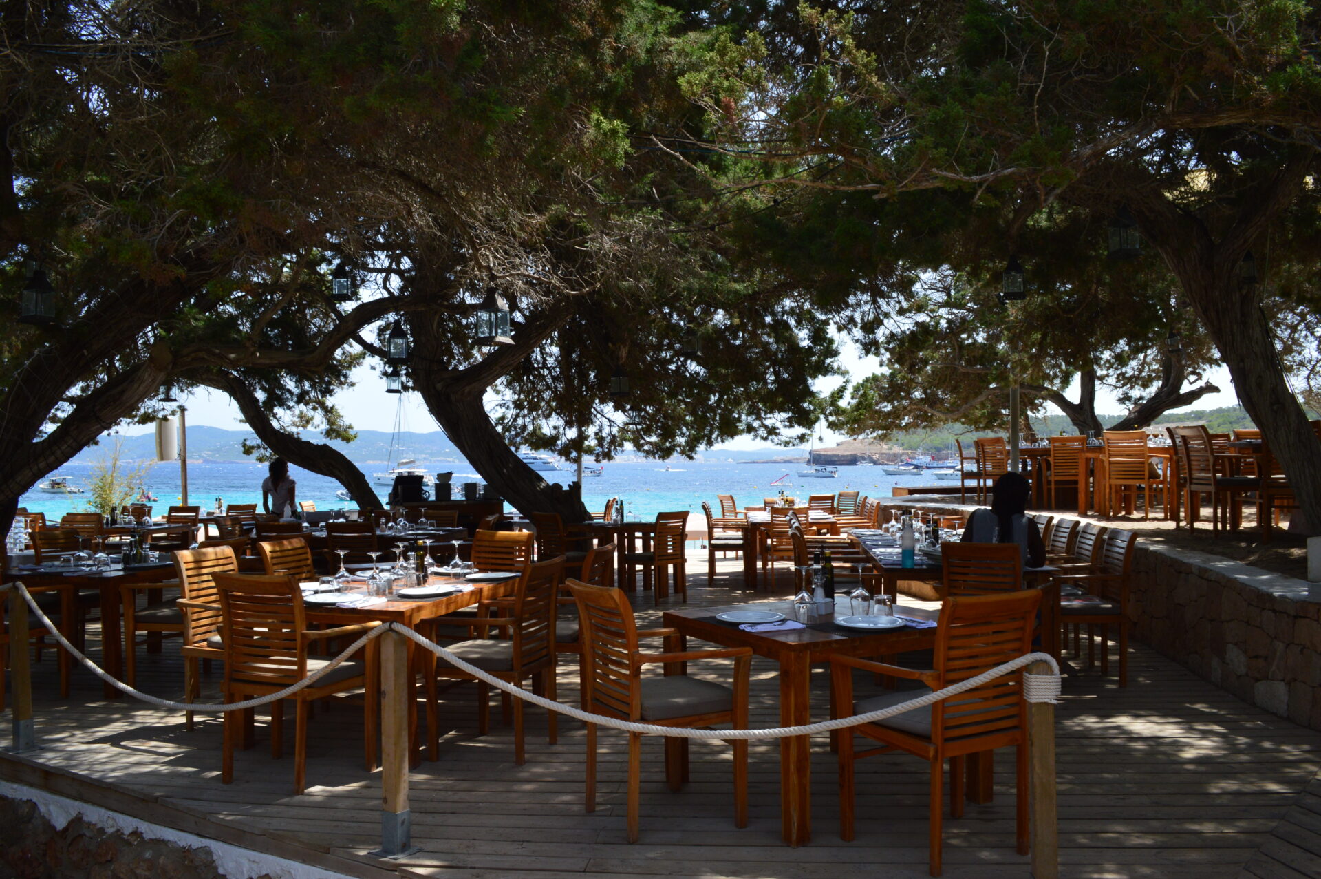 jeudi 23 juin 2017. On fait les courses au petit super mercado je ramène le scout et vers midi on part vers la Cala Saona car entre les navettes, les ferrys et les yachts qui passent plein pot on se fait rouler de temps à autre. Encore un beau mouillage, eau toujours transparente bien aéré. Pas mal de monde .Petit bar à terre grand hotel 4 étoiles et quelques restaurants. Belle plage le pied. Et puis le petit bar certe un peu cher mais tellement agréable.
