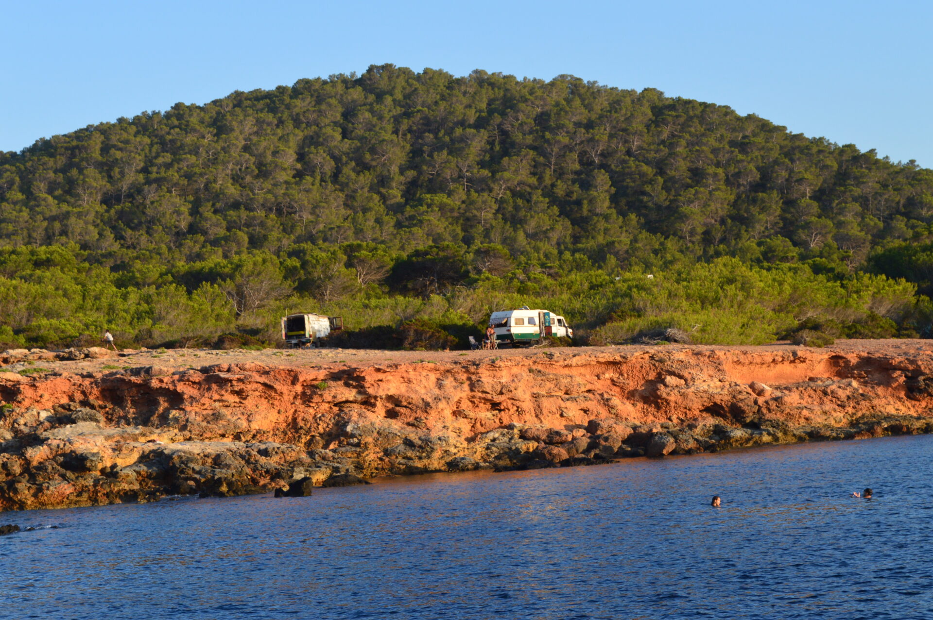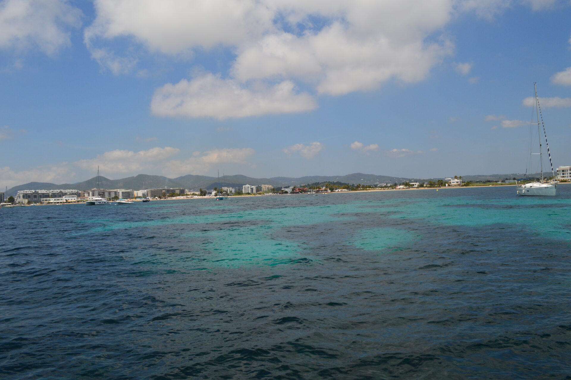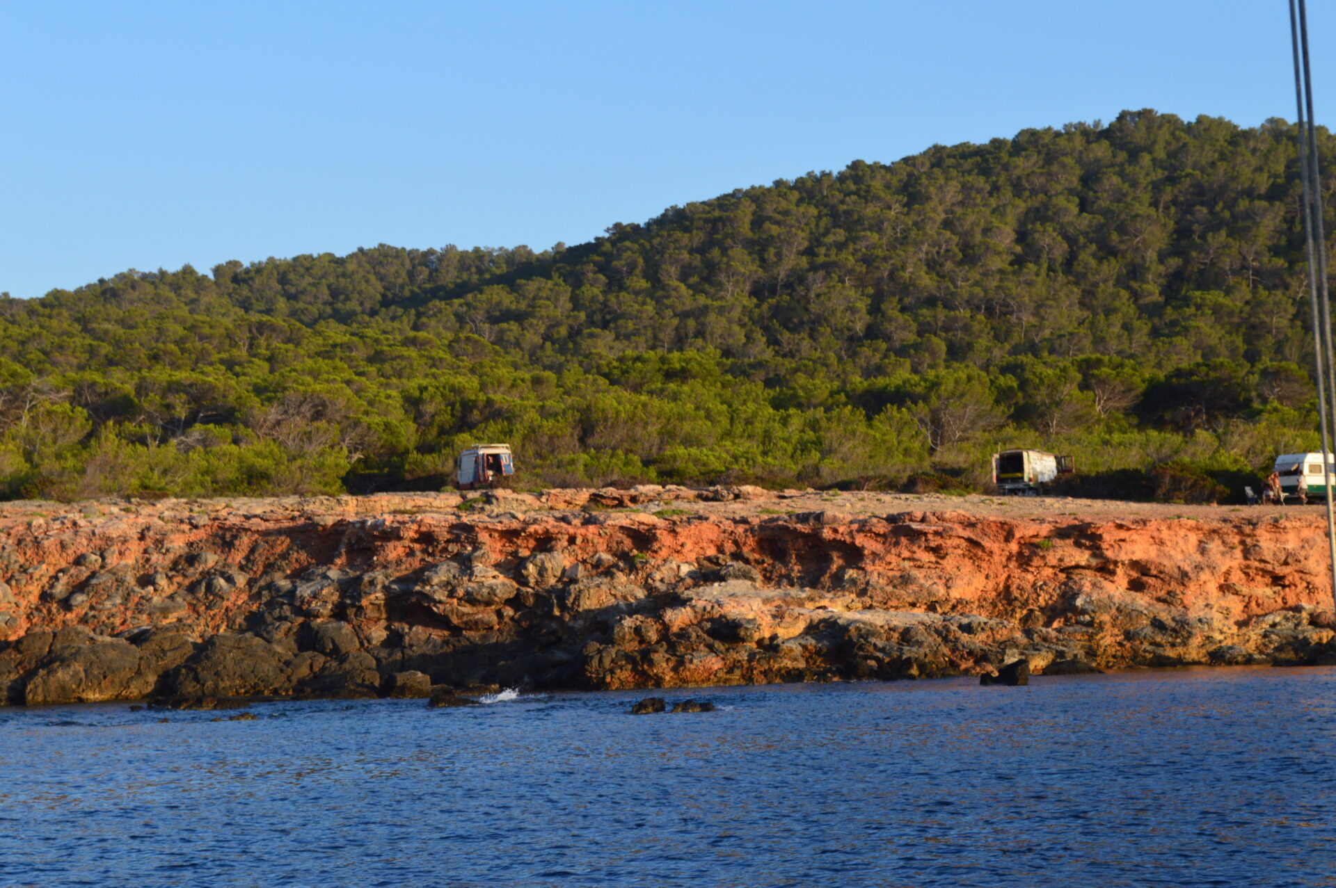 Lundi 18 juin : Donc nous mettons les voiles et descendons le long de la cote. A midi nous mouillons à la Cala Talamanca juste au dessus d’Ibiza. Repas. Joli plage et plein d’hôtels, villa etc.… Ensuite un petit tour dans le port d’Ibiza (en bateau) et nous remettons les voiles direction Espalmador. Nous arrivons vers 16 heures. Les couleurs sont magnifiques. Pascale décrète quelle reste là 3 mois. Il y a du monde mais il y a de la place. Le mouillage d’Espalmador est devenu une réserve. Mouillage sur bouée obligatoire. Mais à coté c’est gratuit et plus beau.