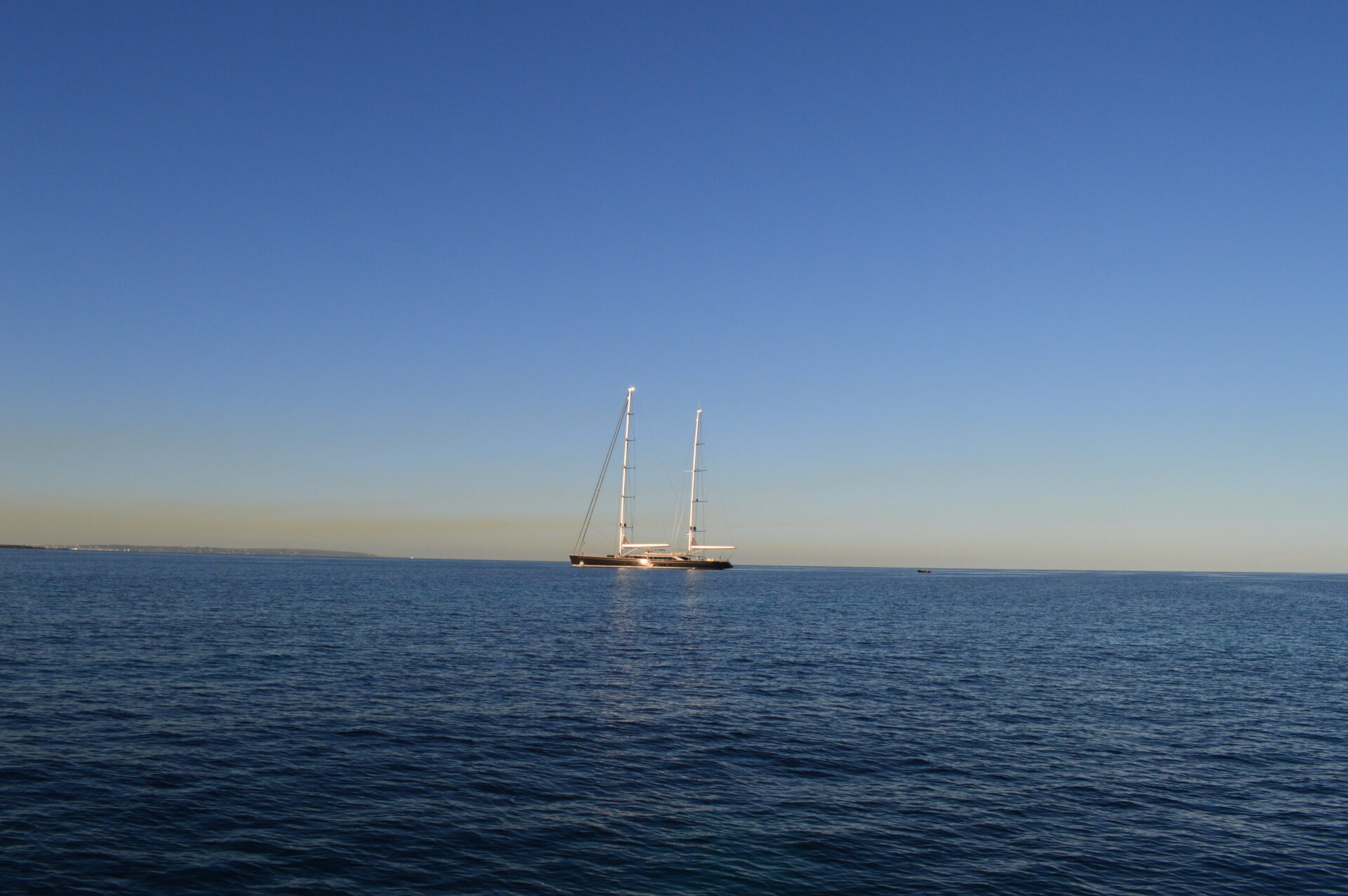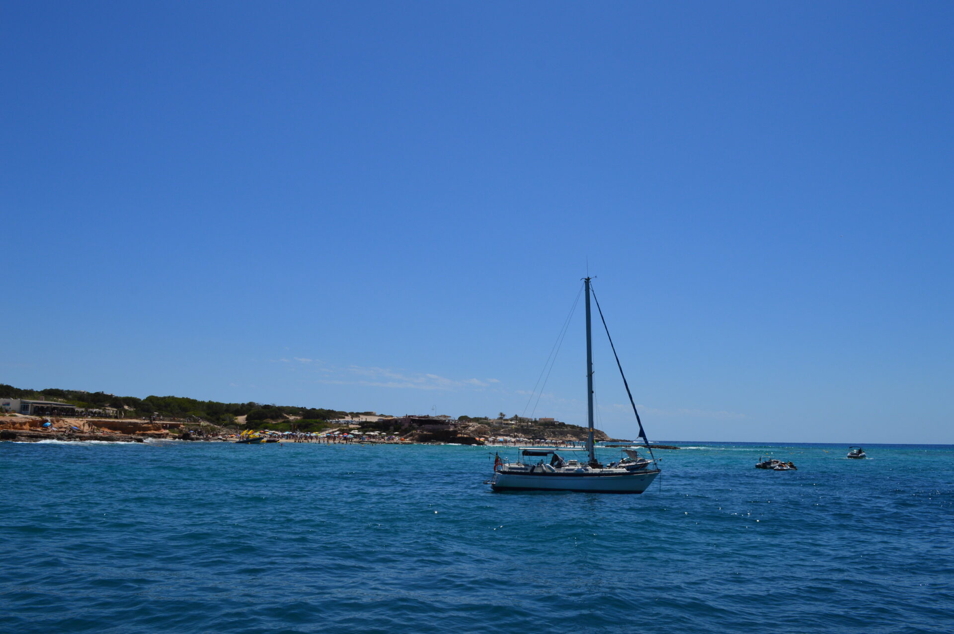 Mardi. Après une nuit à rouler on tire un bord sur St Eulalia. Quand on voit que là aussi le mouillage roule demi-tour direction Formentera qui lui est protégé par ce vent. On retrouve Bella tchao qui est là.