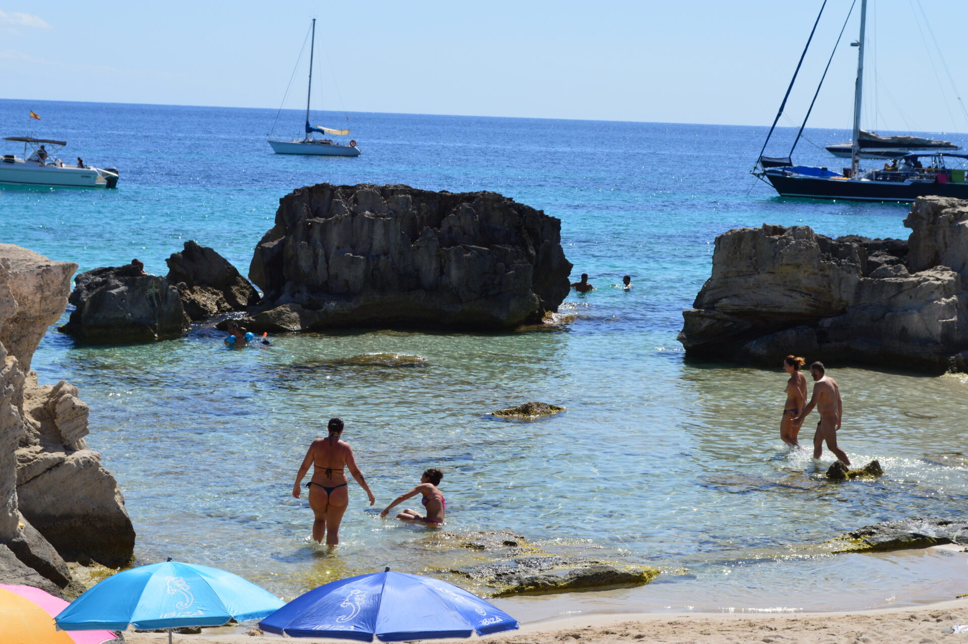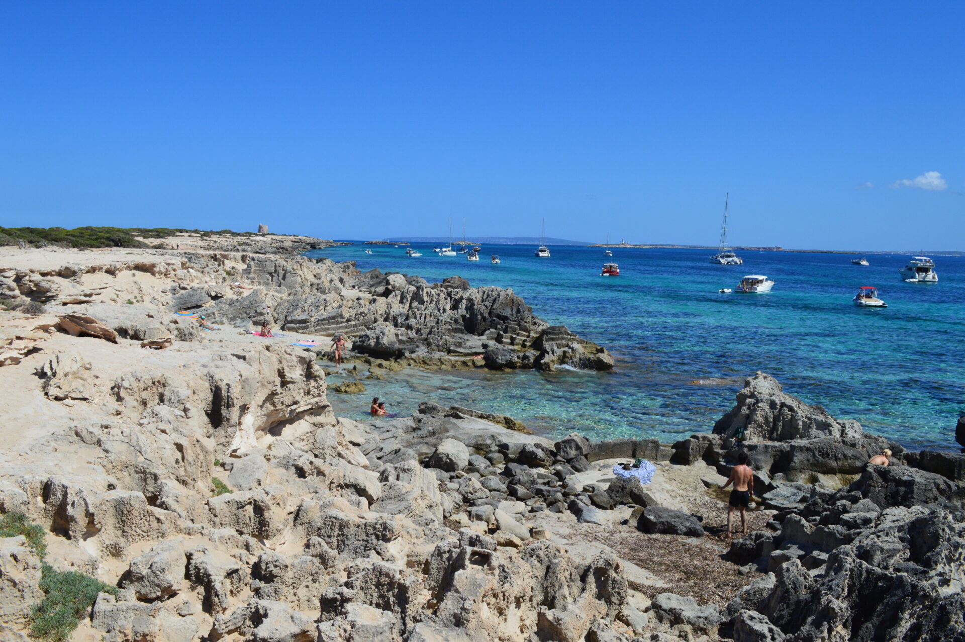 Vendredi. Bella tchao part sur Cala Saona. Nous restons là. Un coup d’annexe et nous voici sur la plage d’Espalmador.