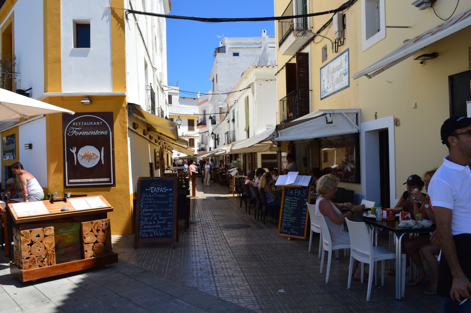 Lundi 27. On mouille à San Antonio. Petit tour en ville. On découvre la faune des touristes en majorité Britanniques. Tous jeunes et les filles en tenue de combat pour la chasse au male. On se fait une parillada de poisons au resto avec Indy que l’on retrouve par hasard. On échange nos numéros de téléphone ce sera plus pratique.