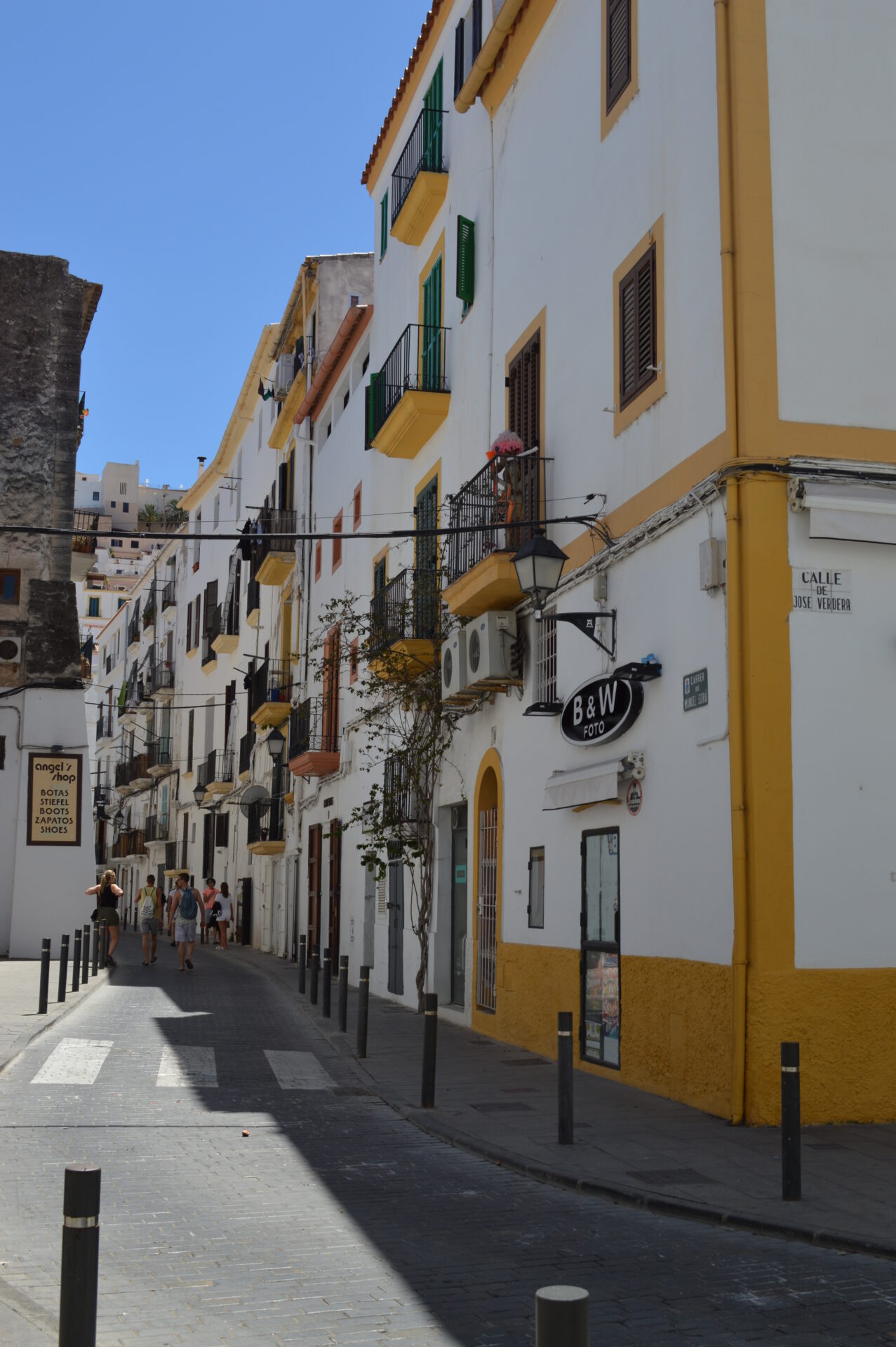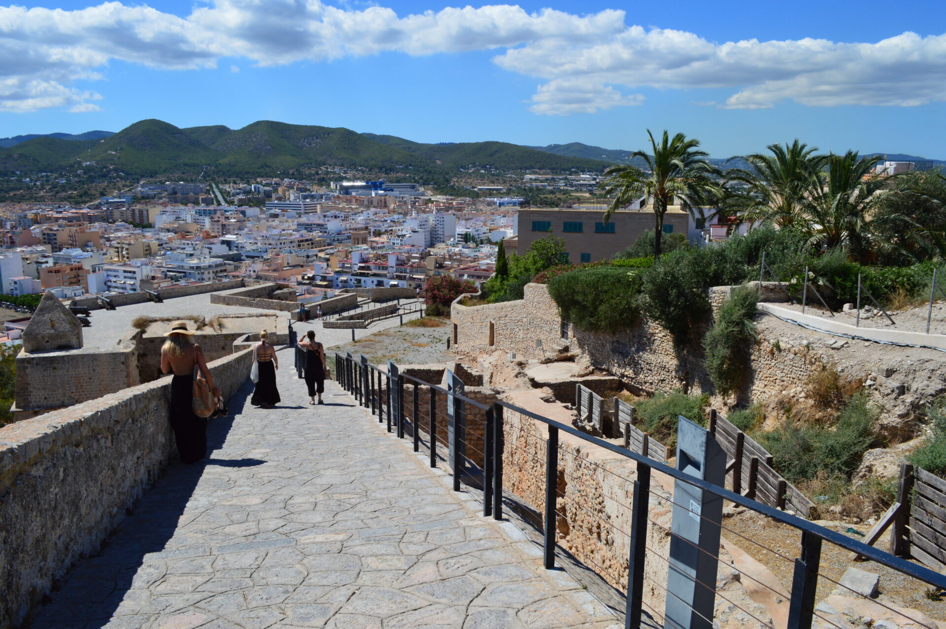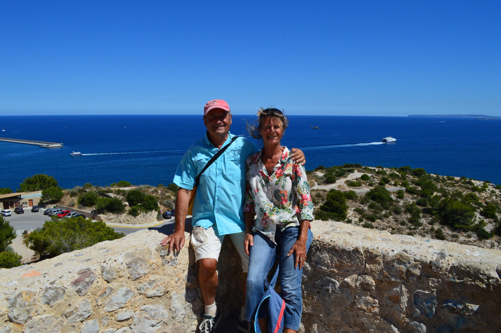 Lundi 4 juillet ; Petit saut à la voile. Nous mouillons au sud d’Ibiza à la Punta Mallorca. On va à pied au pied de la citadelle que nous visitons et au retour on fait quelques courses. Les prix varient de 1 à 2 suivant les magasins. Hasard on croise Martine et sa nièce du bateau Bella tchao.