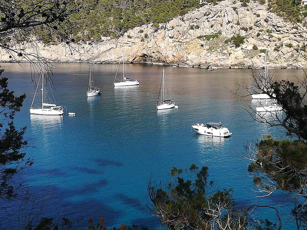 Dimanche 9 juin : Nous levons l’ancre vers 9 heures. Après une petite navigation tout à la voile nous voici à la luxueuse Cala Bassa. Pour ceux d’entres nous qui ne sont jamais venus c’est surprenant. Ici tout est luxe et frime.