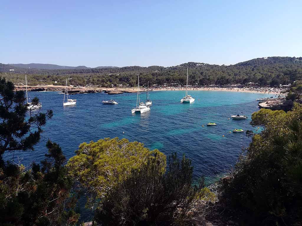 Samedi 15 juin : Nous passons la journée à Cala Tamana. Le temps est toujours maussade. Nos amis vont visiter Ibiza qui se trouve à 5 kilomètres à pieds. Après une promenade à terre nous nous faisons une petite soirée tapas. Un peu cher mais bon et personnel très sympa. La nuit est calme sauf à 4 heures du matin ou nos touchons le bateau qui est à coté de nous au corps mort. Nous changeons de place. En fait notre chaine s’en enroulée autour d’un rocher et nous n’avons pas évité comme prévu. Bon plus de peur que de mal.